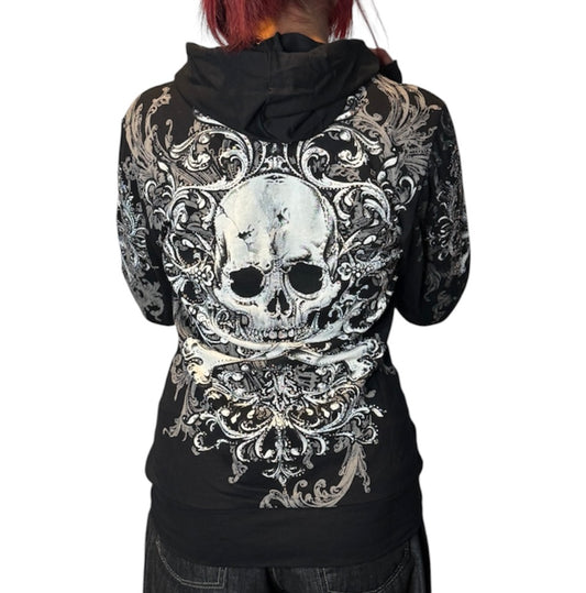 Skull Rhinestone Zip Up Hoodie